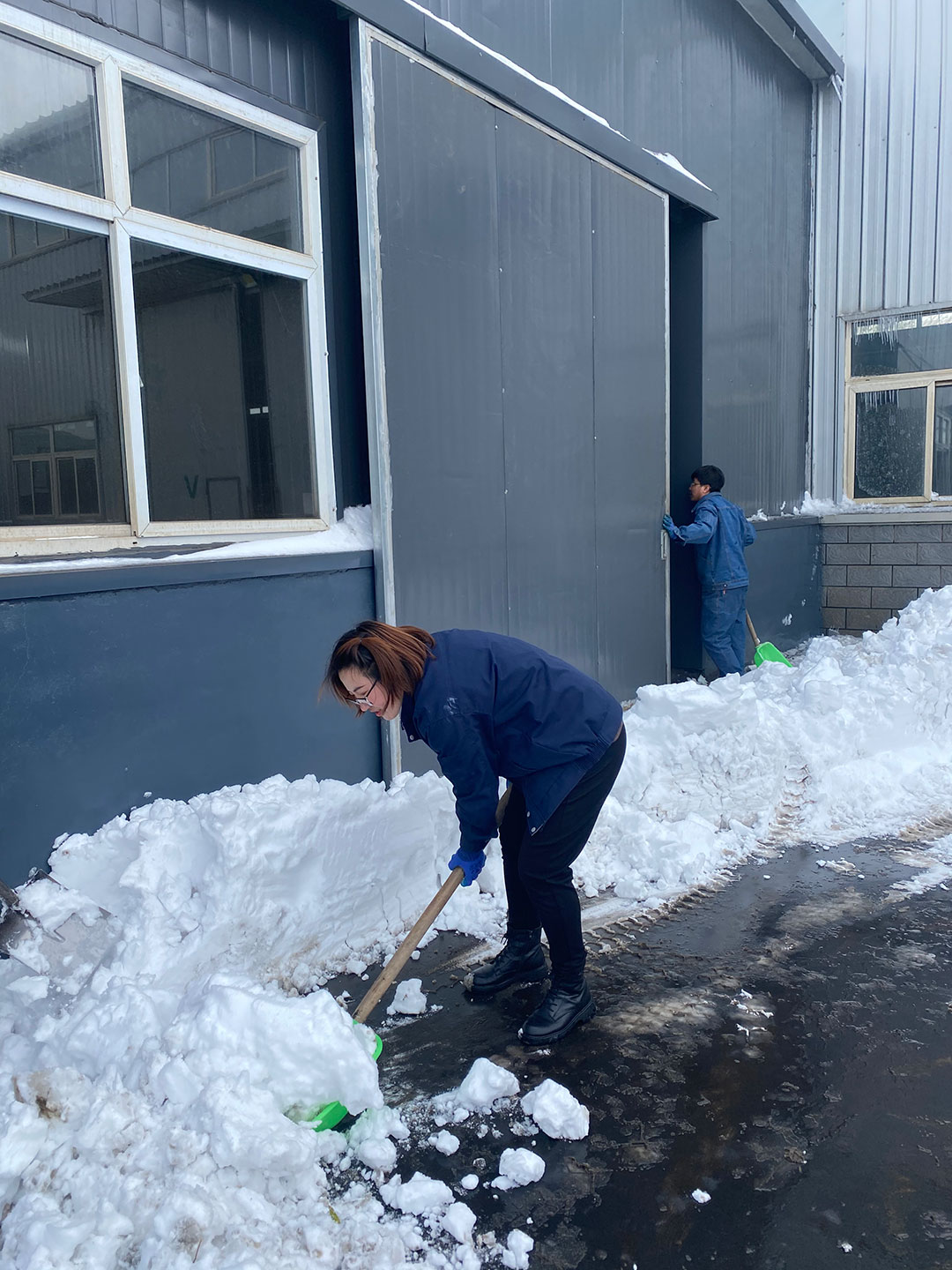 經(jīng)過連續(xù)的緊張作業(yè),工廠內(nèi)積雪基本清掃干凈,確保將客戶的貨物第一時(shí)間發(fā)出!這次掃雪看似只是一個小小的活動,但卻能折射出一個公司的精神面貌和團(tuán)隊(duì)凝聚力,不僅保證了各位員工和來訪客人的安全出入和道路交通的暢通,更重要的是,通過此次活動,充分體現(xiàn)出了公司員工良好的集體責(zé)任感和團(tuán)隊(duì)協(xié)作精神。